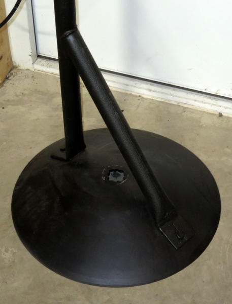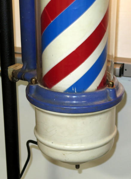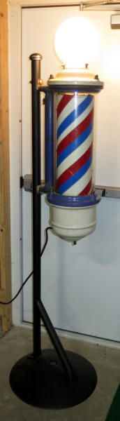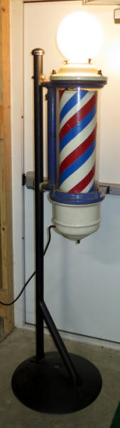 Enameled Body, new white globe on the top, custom made stand for display, good old original and hard to find; unit stands 40" tall and about 15" across plus the pole, about 6' tall overall