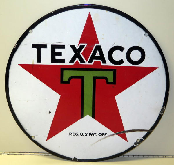 15" across, has spot of damage on the lower right side and general wear