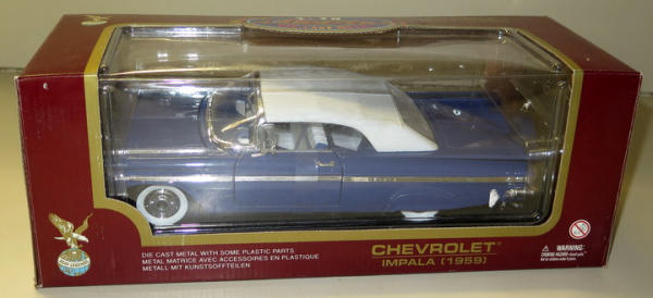 Gillham Online Only Farm Toy & Diecast Auction 15 Ohio Street, Wakonda, SD 57073 Huge Auction! All sizes and brands! Farm Toys & Diecast Cars. All from the Chaney Gillham Collection of Bowdon, ND Catalog | Terms of Auction | Print Catalog Catalog | Terms Back to Catalog #174 – 1959 Chevy Impala 2-door Hardtop--Blue w/ White Top NIB More Details NIB Location: 15 Ohio Street, Wakonda SD, 57073 High Bid: $40.00 – joebeedee bidding history Bidding has closed on this lot Back to Catalog