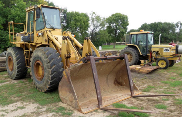 includes grapple, bucket and forks, very good rubber, heater, no AC, runs good. UPDATE--This is a 1988 year model, not a 1998 like the newspaper says, it was a misprint.