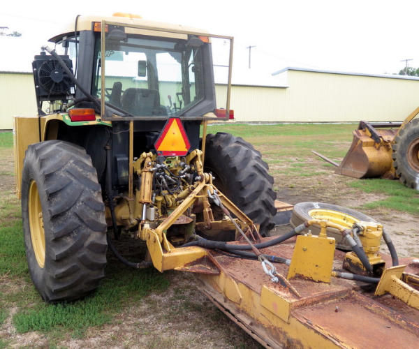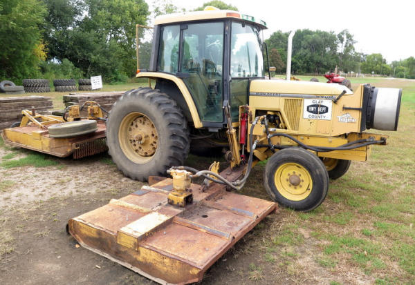 Tractor has 6,840 hours, Triple Hyd. 540 PTO, 3pt Mower, includes extra front tire and rim; AC, Heat, less than 50% rubber, runs fine