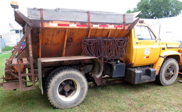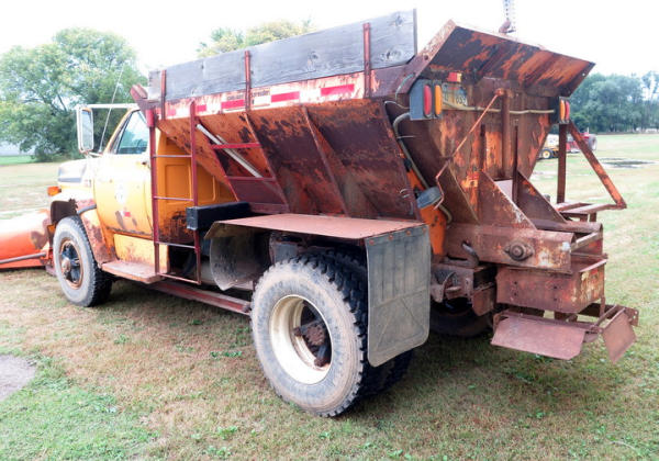 Single Axle, 5spd/2spd, Sander Box, 10' Hyd Blade, good rubber, runs good, shows about 79K miles; Yankton County Surplus