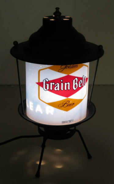 near mint, bulb inside heats up the center motion and makes the light twinkle displays the slogan, 13" tall; first one we have seen and this one is mint!