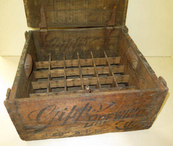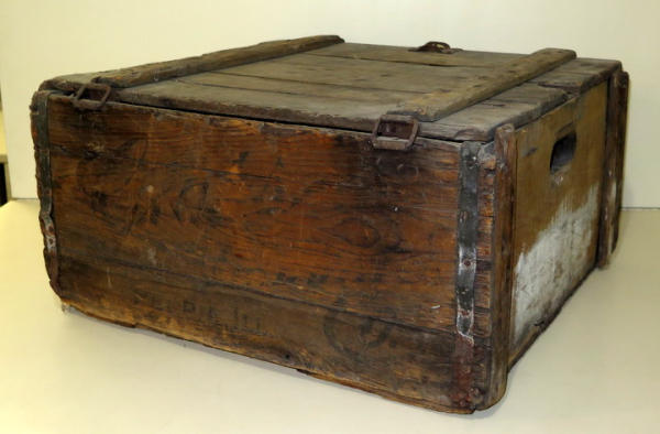 Pre-Prohibition, 20"x22"x10", one side is pretty good, back side is pretty worn, held 3-dozen bottles
