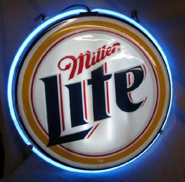 Plastic face with neon ring and neon back light, missing a few small screws, but lights up and works great, about 21" across