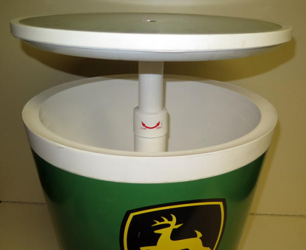 Plastic cooler tub with a pop top that works like an end table, has some light wear, unique