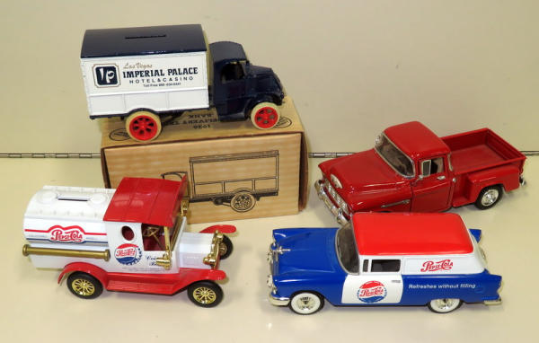 Pepsi, Imperial Palace (w/Box) & '55 Chevy Step-Side; all to go one money