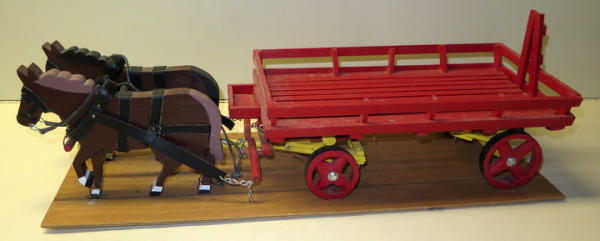 Horses are just cutout of 1" wood, no much detail, about 26" long
