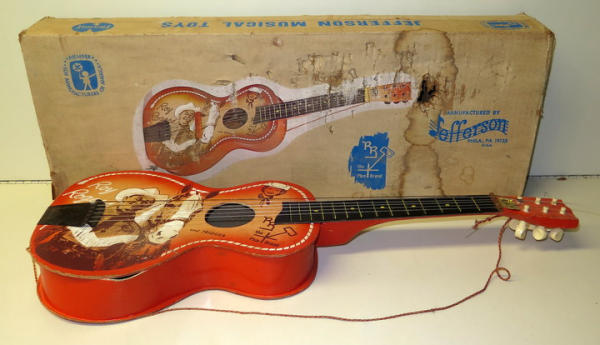 Guitar has great graphics, but some general wear from play and age, box included has some general wear and damage