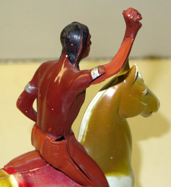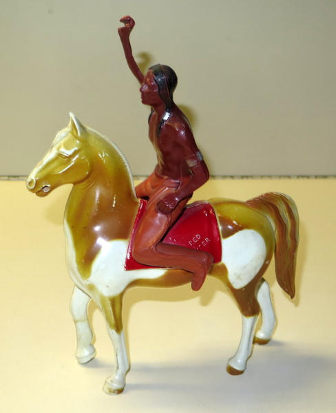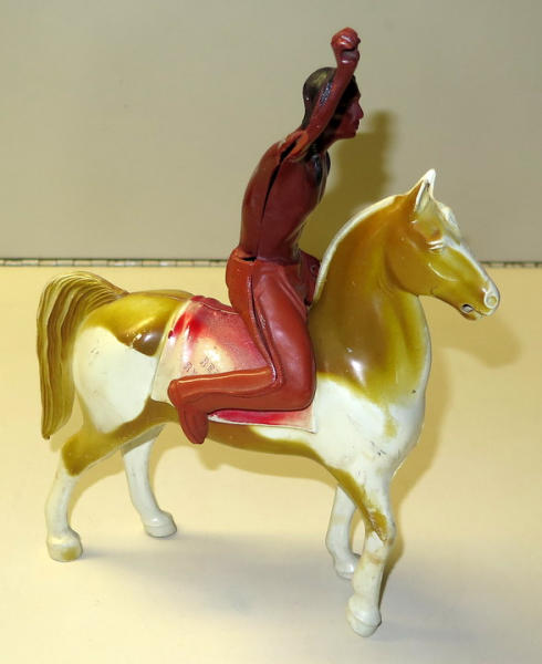I don't think the horse is Hartland, but same size, has some wear, no small accessories included; arm in the air has some damage, see photo