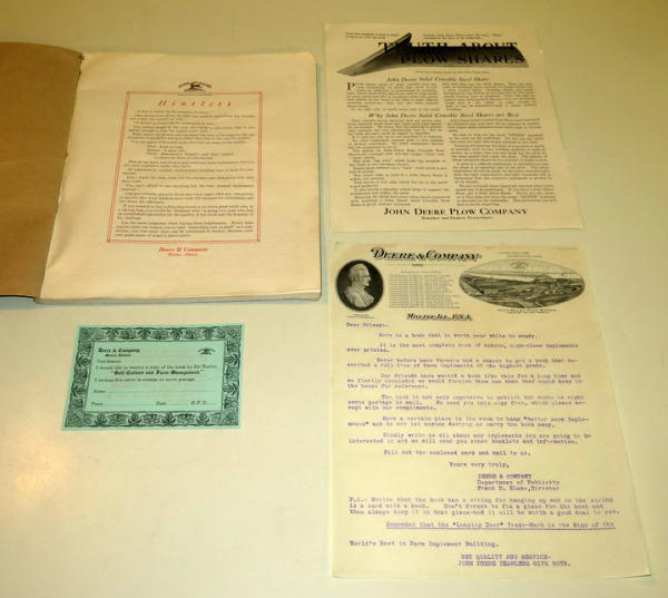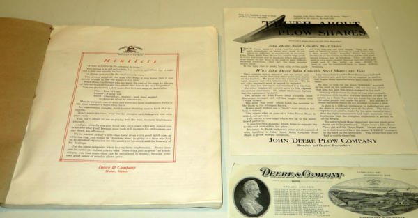 148 pages, large format, not sure on the year, but looks to be Pre-1920, no tractors inside; has the original card attached with the "L" Screw so you could hang the catalog up along with a few sheets of supplement literature inside, great piece
