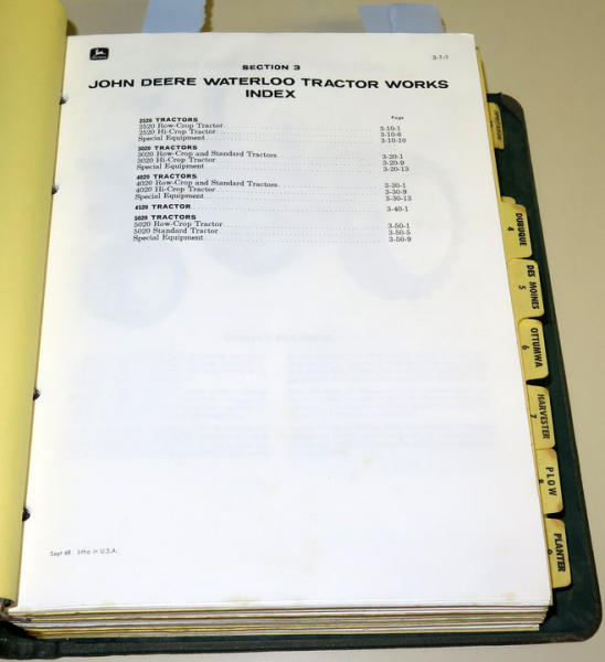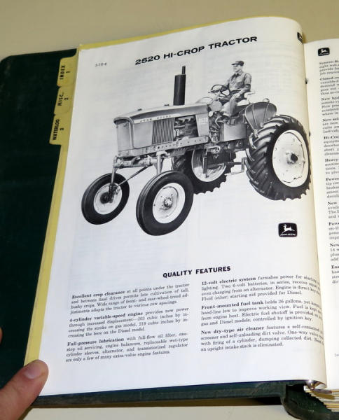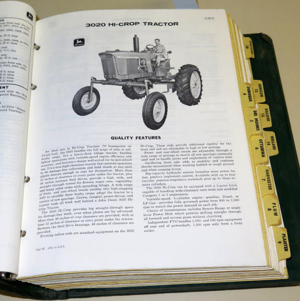 2.5" thick of Material; 2520, 3020, 4020 & more plus high crops and huge assortment of tractors, pretty nice and clean; hard to find New Generation Sales Manual!