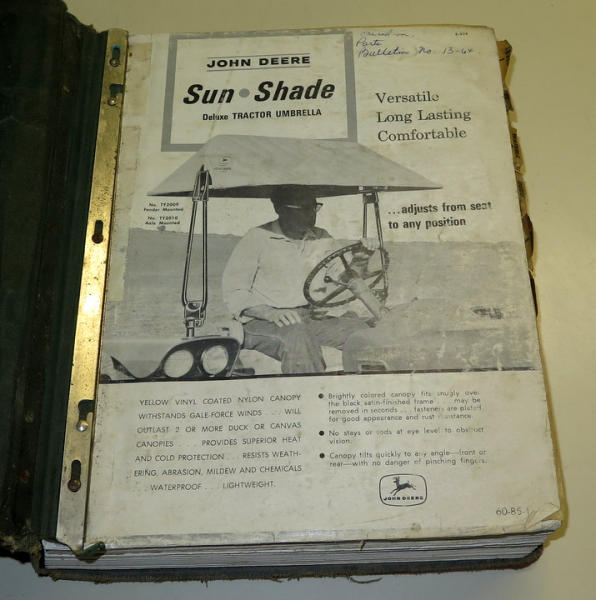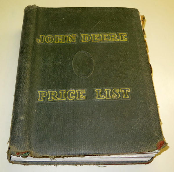 about 1.5" thick of material, cover has heavy wear, contents have normal wear