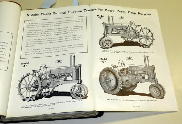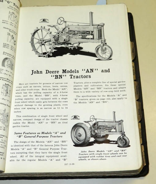 nearly 2" thick, shows the Unstyled Tractors on rubber, cover has some wear, but contents are pretty good