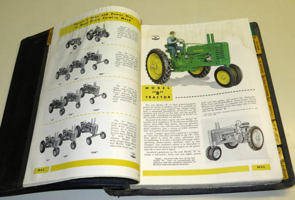 about 1" thick of material, some of the pages have some water damage, cover has general wear, not 100% on the year, but looks to be late 1940's time frame