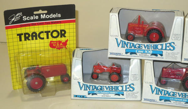 also 2 1/32nd Tractors--Cockshutt & JD, all NIP, all to go