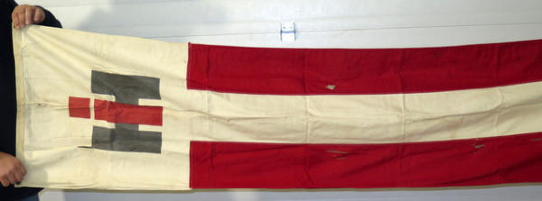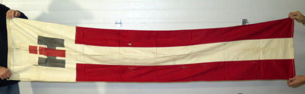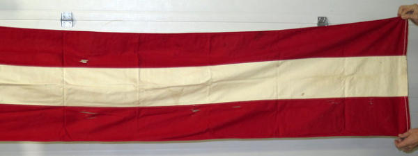 main piece is 9' long, has some holes and tears, Blue and white pieces included, 3 of them, but no logo, sells as a set for one money but an old original set,
