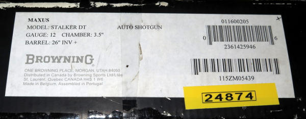 26" Invector BBL; Synthetic Stock, includes chokes, Rates unfired & new in the box; box is good with normal storage wear; SN#24874