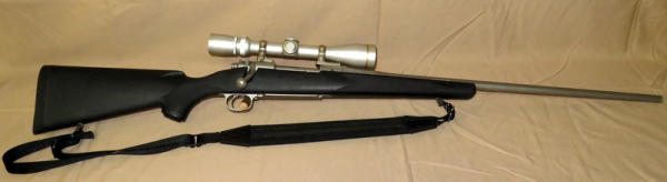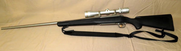 26" barrel; black synthetic stock; comes w/Leopold VARI-X III 3.5-10x40mm Scope; sling; bolt action is smooth; very nice condition & a sharp looking firearm; SN#G338426