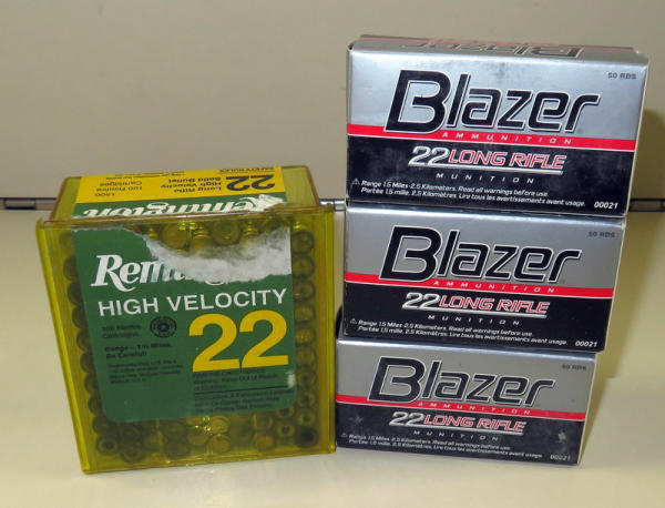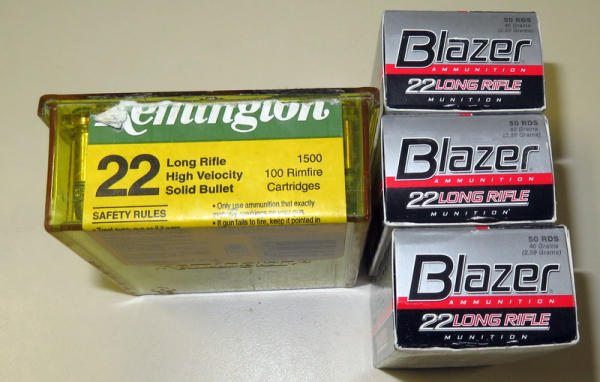 3 boxes of 50 of Blazer and 1 box of 100 Remington High Velocity; sells all for one money