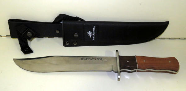 like new; 9" blade and 14" overall; sheath is heavy canvas w/belt loop; nice