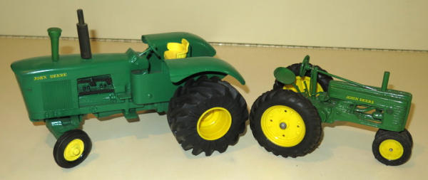 A is very heavy, solid cast tractor, 5020 is a poor custom job, wrong color green, different wheels added, both to go