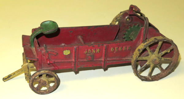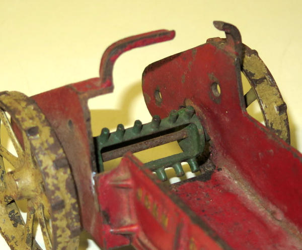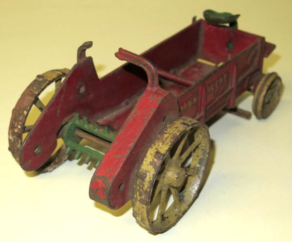 original paint, but broken top bar, broken hitch, missing the beater and a piece missing out of the casting by the back right wheel, as-is condition, good wheels and seat