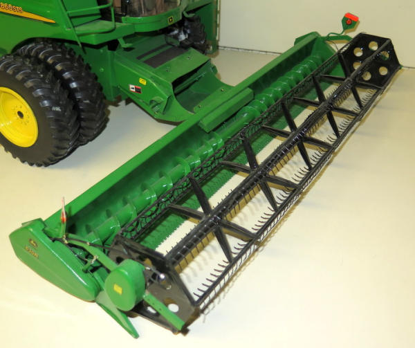 23" long, 21" wide header, all scratch built, parts are in the grain tank to attach the header, SN#3, marked on the bottom, a little dusty, but overall very nice