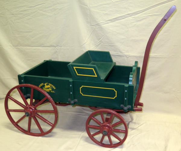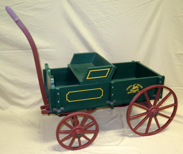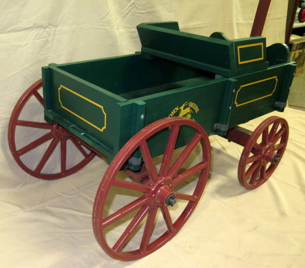 This is about 1/2 the size of the goat wagons we usually sell, very hard to find, I think this is only the 3rd one the past 15+ years we have sold; issued by JD, metal wheels, minor wear from storage and transport