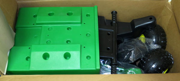 never assembled, box has a little water damage and wear, but toy looks good and decal sheet and instructions included