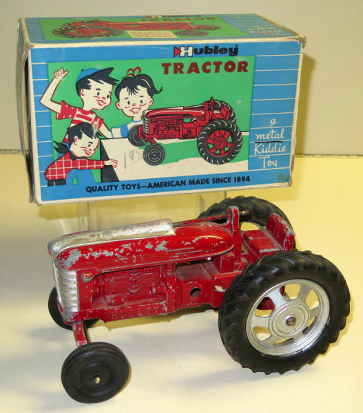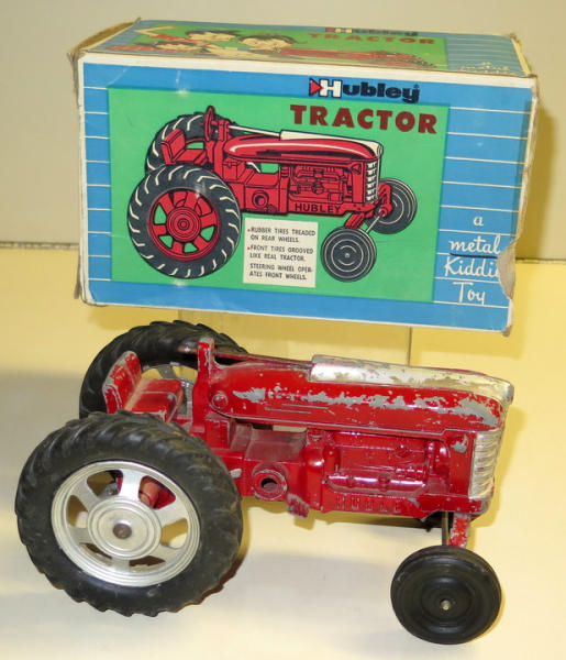 Tractor has heavy play wear, rates 70%, box is missing main end flap on one side and an inside flap