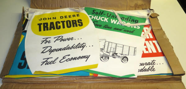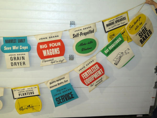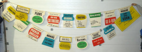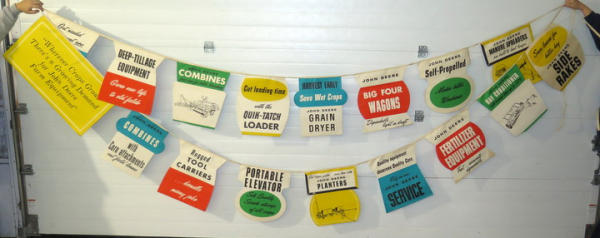 don't believe it was ever used, great graphics with the equipment, paper pennants with cloth string, looks to be about 20' long or so, box has some general wear