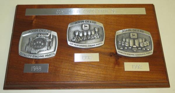 12"x7", has 3 buckles or plaques attached to the plaque, very nice