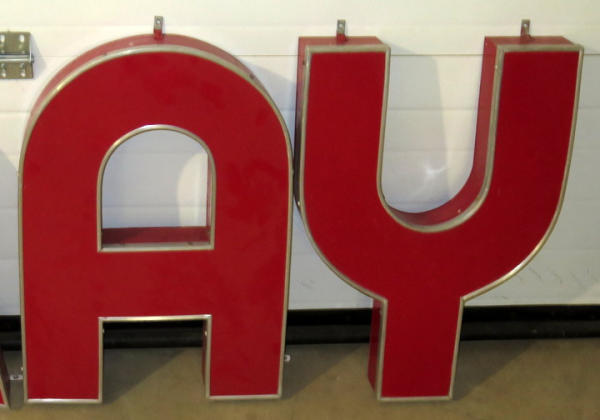 each letter is about 24" tall, all metal, about 3" thick, not sure what they came off of, sells as a set for one money