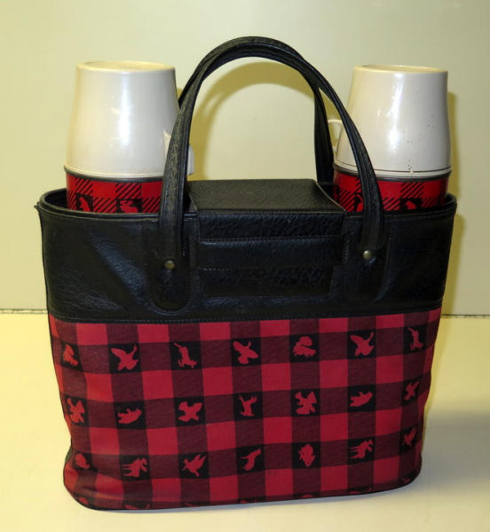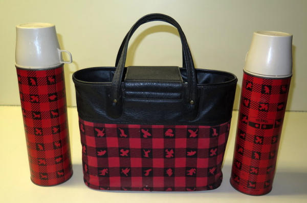 unique, has the famous Red/Black Checkerboard pattern on both Thermos & the carrier, nice clean set, sells as a set