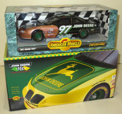 #421 - (3) JD 1/24th NASCARS--Gold #97, Gold #97 '40 Ford, & Green '40 Ford Stock Rod