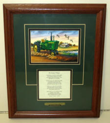 #432 - JD Framed Art Print w/ 3010 Tractor and "The Farmer's Prayer"