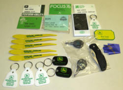 #454 - Lot of JD Kansas Dealer Advertising--Name Tags, Keychains, Knife & more