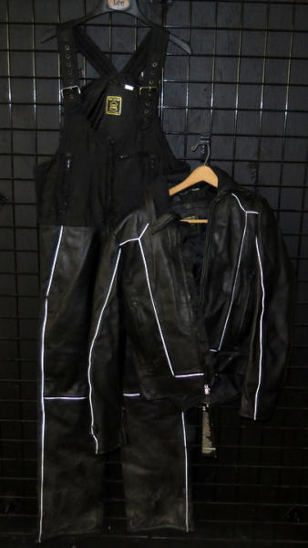 I can't find a size, but looks to be at least a Large, maybe an extra large; same with the bibs; this is a high-quality, older set that has never been used; sells as a set