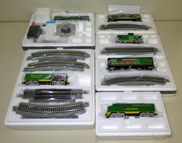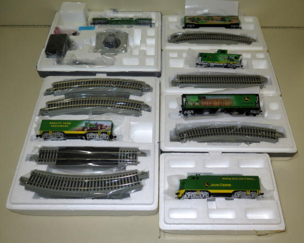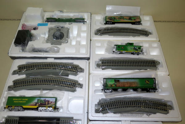 all NIB, Engine, Grain car, Box Card, Flatbed, & Caboose, all new in Styrofoam boxes and near mint, all to go for one bid