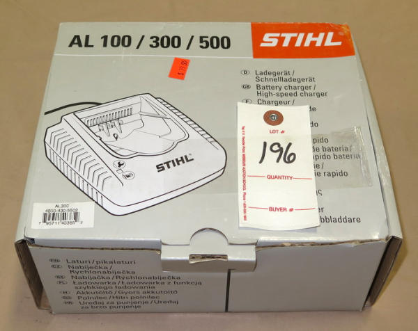 August PartSmart Auction 15 Ohio Street, Wakonda, SD 57073 300+ Lots of New & Slightly Used John Deere Parts, Stihl Parts, and JD Manuals! Catalog | Terms of Auction | Print Catalog Catalog | Terms Back to Catalog #196 – Stihl AL 100/300/500 Battery Charger NIB More Details NIB Location: 15 Ohio Street, Wakonda SD, 57073 High Bid: $40.00 – vidaniko bidding history Bidding has closed on this lot Back to Catalog