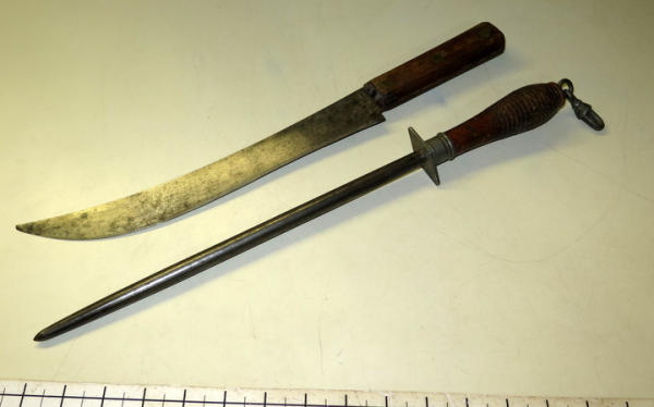 Steel is 17" long, knife is about 16, both have heavy wear, 2x the money
