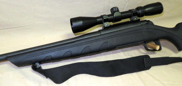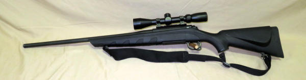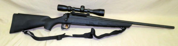 22" barrel; Black synthetic stock; looks like it's hardly been used; 3-9x40 scope is clear; includes sling; nice set-up! SN#M71739869