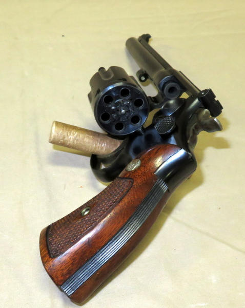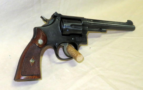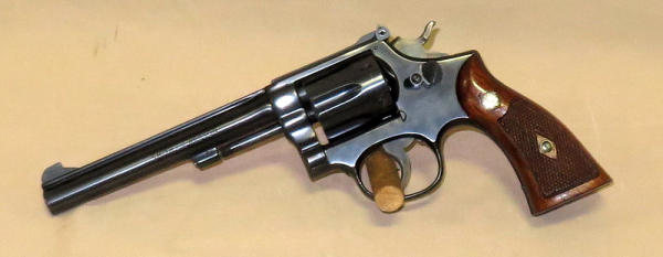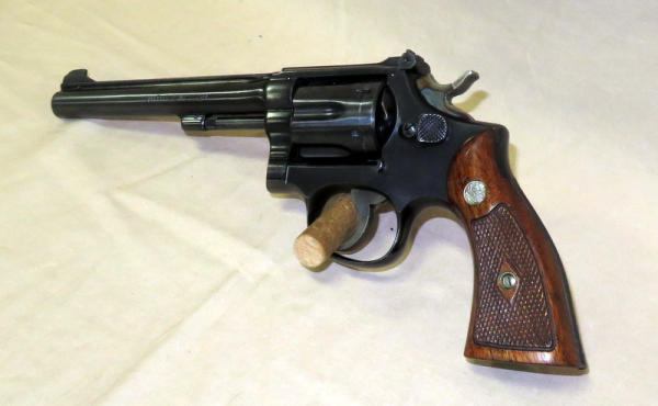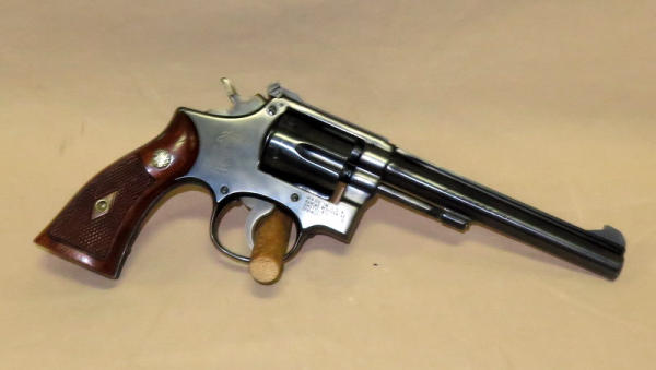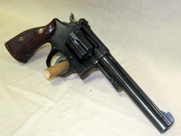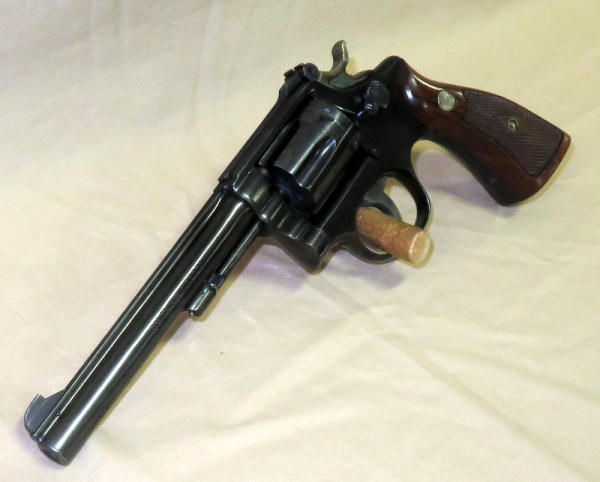 6" barrel; wood grips; overall gun shows little wear; nice revolver; SN#51673