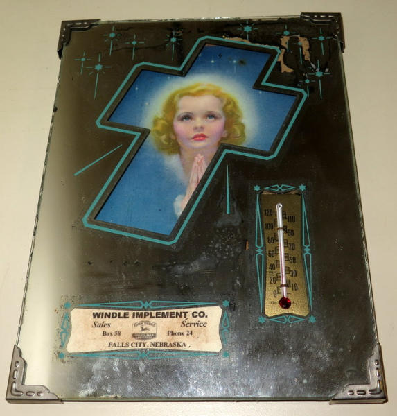 8"x6", old piece with new dealer logo added, has age spots and wear