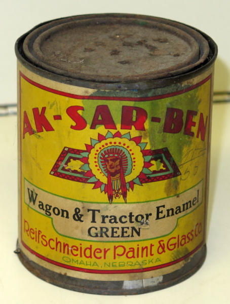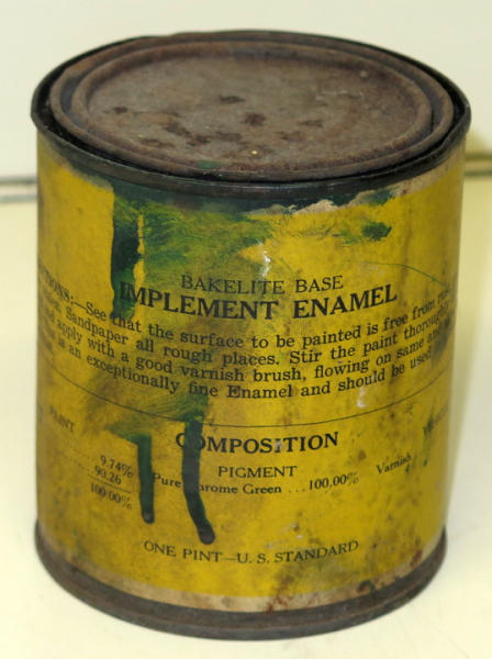 1-pint can, neat graphics, paper label is worn and stained, empty