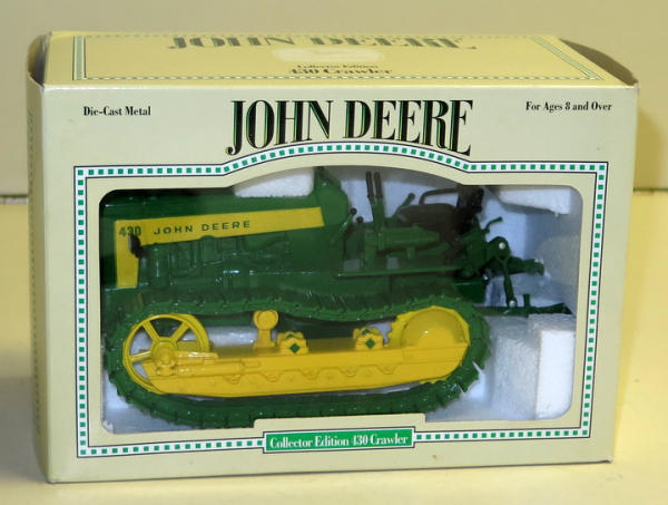 Large John Deere Toy & Memorabilia Online Only Auction 15 Ohio Street, Wakonda, SD 57073 The Jack Lorsch Collection of Kennard, Nebraska. Great mix of good John Deere Toys & Advertising! Catalog | Terms of Auction | Print Catalog Catalog | Terms Back to Catalog #287 – JD 430 Ag. Crawler w/ Metal Tracks & 3pt C.E. NIB More Details NIB Location: 15 Ohio Street, Wakonda SD, 57073 High Bid: $20.00 – case39 bidding history Bidding has closed on this lot Back to Catalog