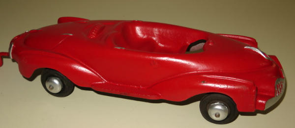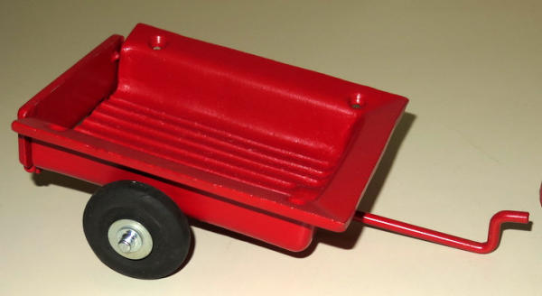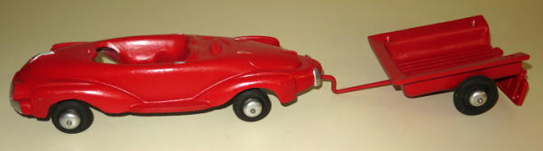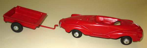 Car is 12" long plus the trailer, all repainted & restored, don't know maker, neat looking piece