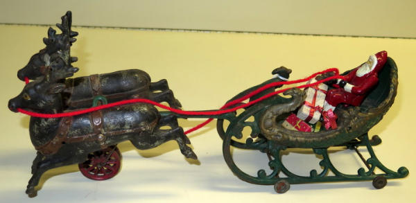 Same Sleigh as earlier, but different set of deer; Sleigh is original and decent paint, Santa repainted, deer are original too,