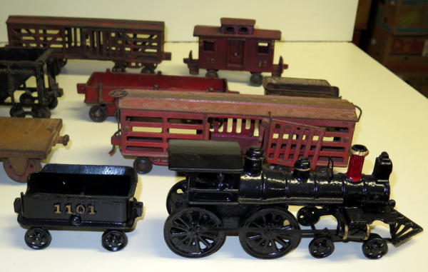 Engine has been repainted, rest are repainted, large livestock cars are over 10" long, don't know what belongs to what, so selling as a large lot, all to go